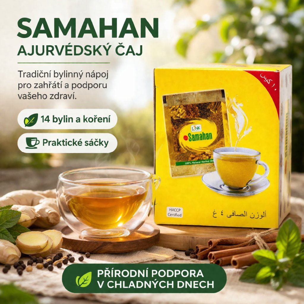 Samahan bylinný nápoj 25 × 4 g – ajurvédská směs pro chladné dny, zahřátí a každodenní rituálSamahan je tradiční ajurvédský instantní nápoj ze Srí Lanky vytvořený ze 14 pečlivě vybraných bylin a koření. Kombinace zázvoru, černého a dlouhého pepře, koriandru a lékořice dává nápoji jeho typickou výraznou chuť a hřejivý charakter. Právě proto po něm lidé rádi sahají zejména v chladném období, při nepohodě nebo tehdy, když si chtějí dopřát šálek s tradicí a intenzivním bylinným profilem. Díky praktickým jednotlivým sáčkům je Samahan skvělou volbou pro domácí zásobu, kancelář i cestování. Hodí se pro každého, kdo má rád ajurvédské bylinné nápoje, hledá hřejivý čaj do zimy nebo chce mít po ruce něco výrazného, co se připraví během chvilky. Proč si vybrat právě Samahan?