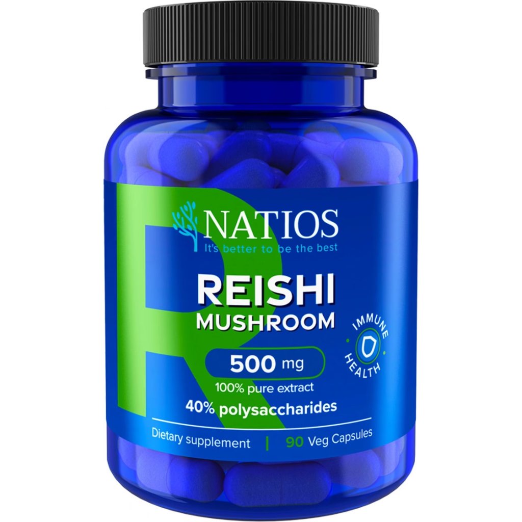 NATIOS Reishi Extract, 500 mg, 40% polysaccharides, 90 veganských kapslí Podpora imunity, duševní rovnováhy a vitality.