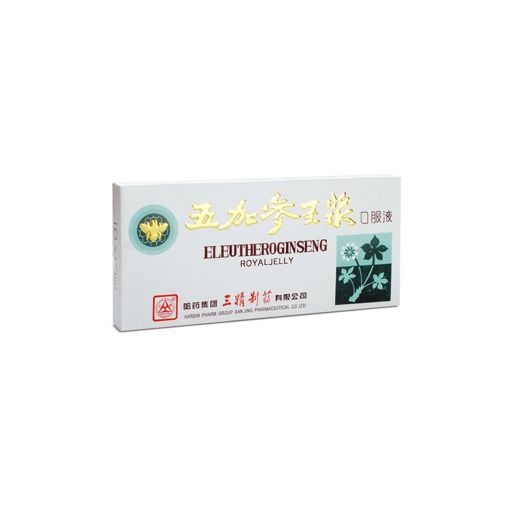 Extrakt z kořene Eleutherococcus senticosus – 7000 mg, mateří kašička – 200 mg, med – 200 mg. Bez konzervantů. Neobsahuje alkohol ani syntetická aditiva.