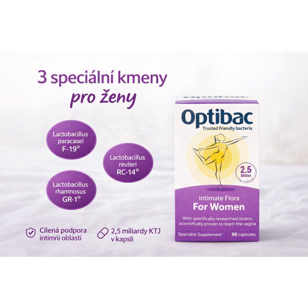 Pro koho je Optibac For Women vhodný?Optibac For Women ocení ženy, které chtějí pečovat o intimní komfort, vaginální mikrobiom a přirozenou rovnováhu citlivě, dlouhodobě a s důrazem na kvalitu. Vhodný může být v obdobích zvýšené potřeby podpory intimní oblasti, při změnách režimu, při rekonvalescenci, ale i jako součást každodenní preventivní péče. Proč ženy sahají po probiotikách pro intimní oblast?Ženský mikrobiom je citlivý na mnoho vlivů – stres, cestování, změny hormonální rovnováhy, menstruaci, těhotenství, menopauzu i celkový životní styl. Právě proto mnoho žen vyhledává speciálně cílená probiotika pro ženy, která nejsou zaměřena jen obecně na trávení, ale i na intimní oblast a močové ústrojí. Co dělá tento produkt výjimečným?Silnou stránkou Optibac For Women je spojení 3 speciálních kmenů živých kultur, jejich cílené zaměření na ženský mikrobiom a důraz na kvalitu místo zbytečně přehnaných formulací. Výhodou je i jednoduché dávkování, veganské složení a možnost užívání v různých životních etapách ženy.