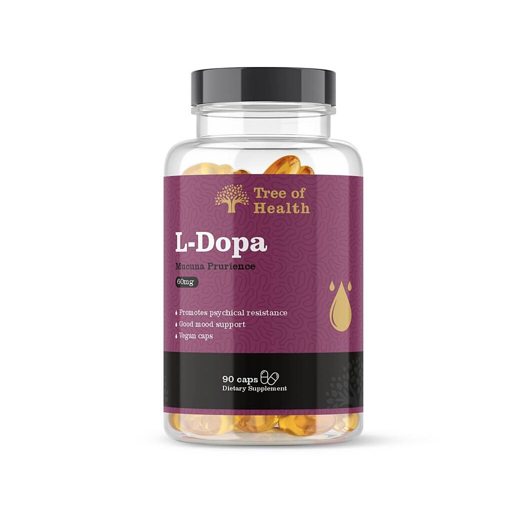 L-DOPA (levodopa) je přirozený prekurzor dopaminu – neurotransmiteru spojovaného s motivací, soustředěním a mentální vitalitou. V produktu Tree of Health pochází z prémiového extraktu Mucuna pruriens, tradičně využívaného v ájurvédské praxi.
