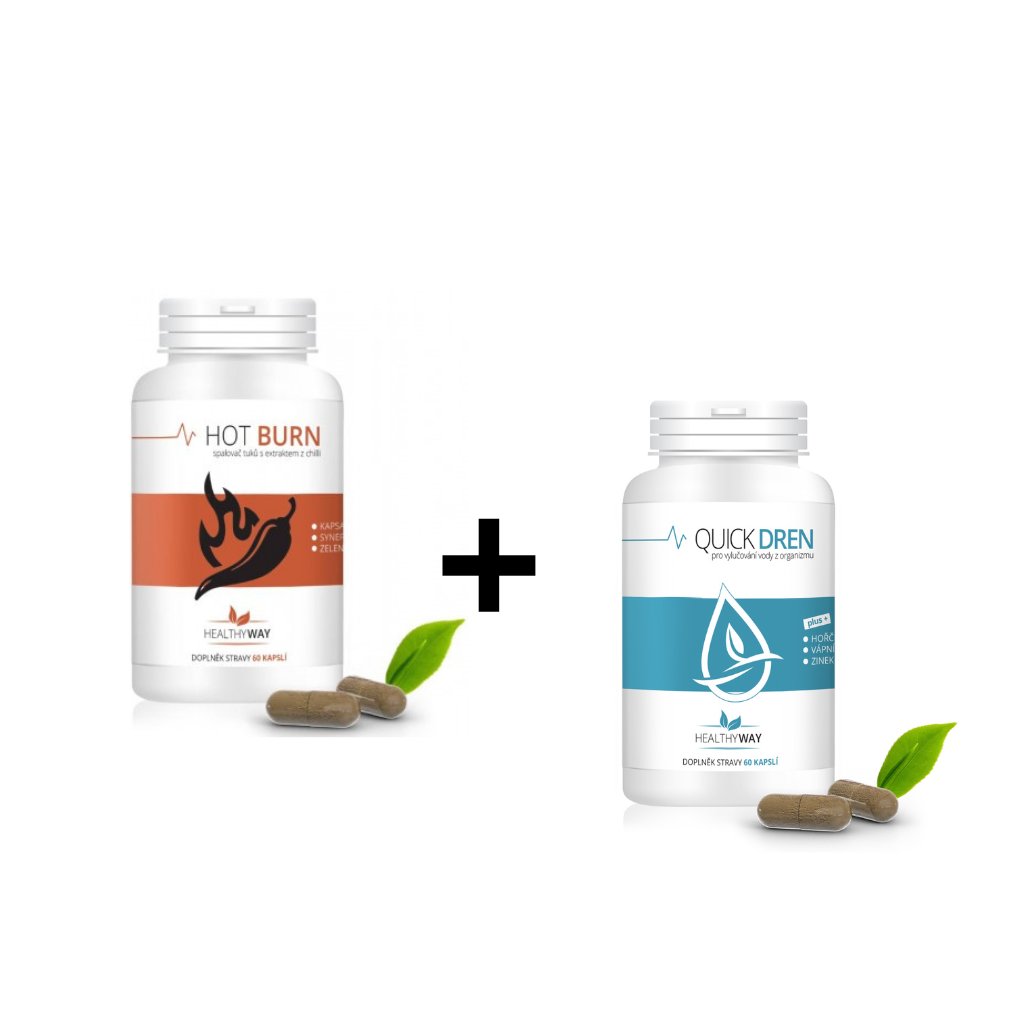 Healthy Way DUO Pack – Hot Burn + Quick Dren (2× 60 kapslí) – termogenní podpora & pocit lehkosti Komplexní balíček pro spalování tuků a detoxikaci