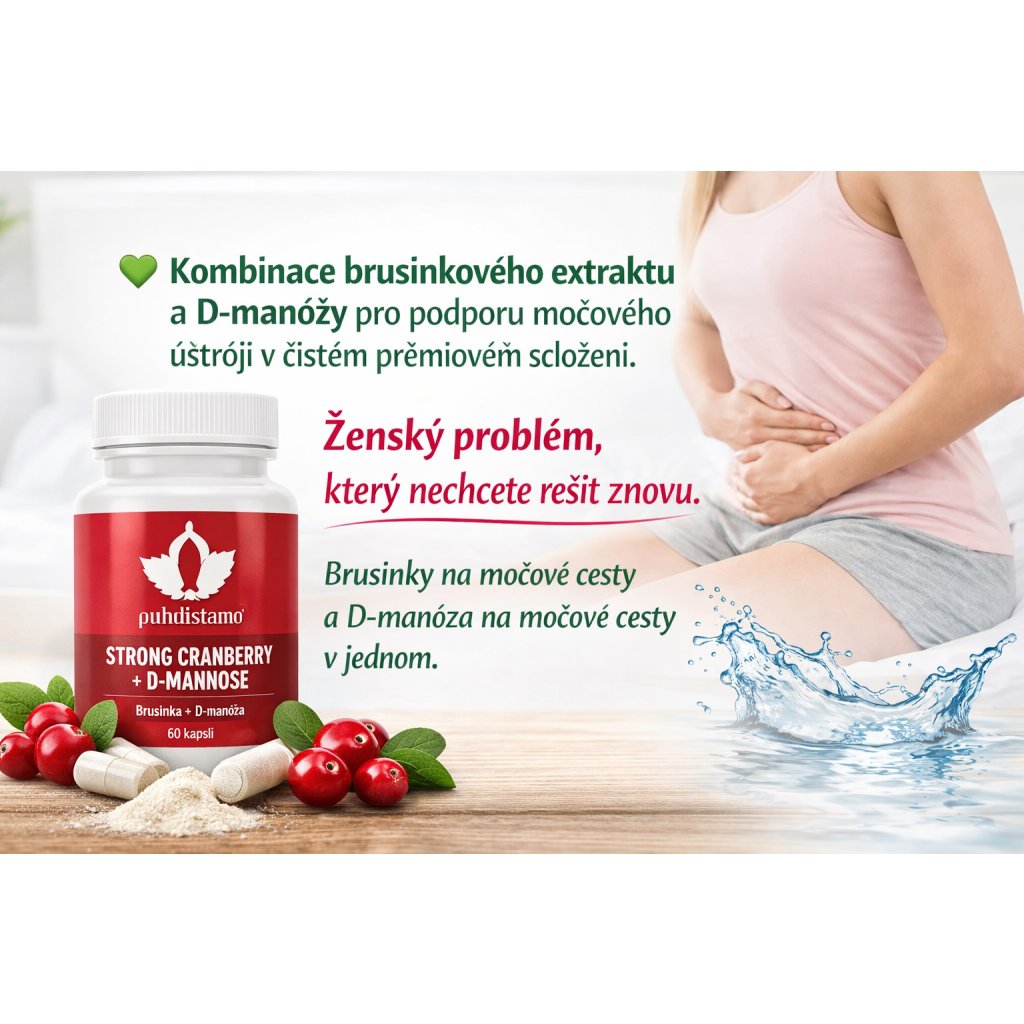 Ženský problém, který nechcete řešit znovu. Právě proto patří brusinky na močové cesty a D-manóza na močové cesty mezi nejvyhledávanější kombinace pro každodenní péči o intimní komfort a přirozenou rovnováhu močového ústrojí.